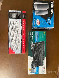 Vendo in blocco 2 tasiere pc trust + Logitech wireless + casse philips Piedino tastiera logitech come da foto usurato. Normali segni di utilizzo