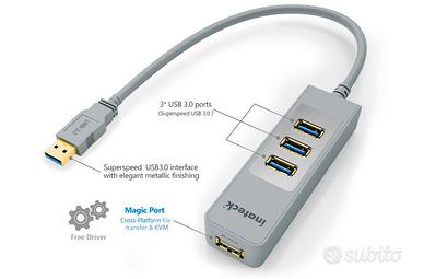 Permette di trasferire file tra due computer collegati al hub, utilizzando anche la condivisione del mouse e della tastiera.