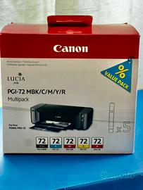 Vendo multipack di inchiostro Canon Lucia PGI-72 per stampanti Canon Pixma PRO-10 e PRO-10S. In questo value multipack troverai: - Matte Black PGI-72MBK - Ciano PGI-72C - Magenta PGI-72M - Giallo PGI-72Y - Rosso PGI-72R