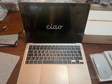 macbook air M1 512gb 8gb di ram 8core cpu 8 core gpu colorazione gold usato ma in condizioni eccellenti l'unica micro ammaccatura sul lato che non impatta in alcun modo nelle prestazioni del laptop. incluso al laptop fornisco anche: