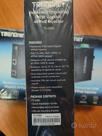 Vendesi iniettore PoE temprato da 90 watt per applicazioni industriali Trendnet TI-IG90. Nuovo - sigillato.