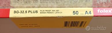 Film trasp. Trattato per stampanti ink-jet monocromatiche e a colori. Formato A4