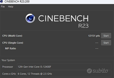 Vendo Intel i5 12400F per passaggio a modello superiore. Processore perfettamente funzionante, utilizzato per gaming e uso domestico. Temperature sempre contenute (nelle foto presente benchmark Cinebench recente). Completo di scatola originale e dissipatore stock mai utilizzato. Richiede scheda video dedicata. Prezzo leggermente trattabile per consegna a mano zona Taranto/Brindisi, altrimenti spedizione tramite TuttoSubito.