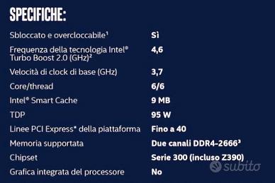 Vendo processore Intel Core i5 nona generazione per upgrade componenti del mio pc fisso. Specifiche nell'ultima foto No spedizione