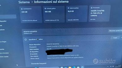 Vendo computer rigenerato con, SSD da 240 Gb RAM 16 Gb DDR4 NVIDIA da 1 Gb Windows 11 home ATTIVO vendo solo CASE e cavo alimentazione 100€ trattabili