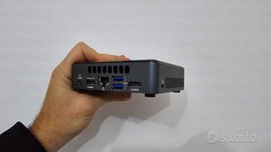 Mini PC NUC equipaggiato con processore Intel Core i3 di 7ª generazione e 8GB di RAM, ideale per uso domestico e ufficio. Dimensioni ultra-compatte che si adattano a qualsiasi spazio di lavoro.