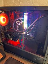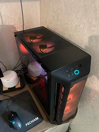 Intera postazione da gaming che comprende: pc assemblato, monitor, periferica e accessori.