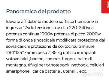 Vendo inverter MKC 1000C-12 per passaggio a modello superiore. Scheda tecnica in foto 2. No perditempo o affaristi.