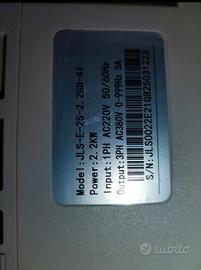 Inverter di frequenza variabile (VFD) modello JLS-E-2S-2.2GB-4T. Questo dispositivo è utilizzato principalmente per controllare la velocità dei motori in applicazioni industriali come nastri trasportatori o macchine CNC.