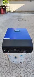 L’inverter PWM è un inverter/caricabatteria ad alta frequenza progettato per soddisfare tutte le esigenze che il mercato STORAGE per impianti fotovoltaici oggi giorno richiede. Puo funzionare sia in modalità UPS , quindi fornendo priorità alla rete elettrica e successivamente alle batterie in caso di black-out; sia in modalità inverter fornendo priorità alle batterie o addirittura al generatore fotovoltaico e successivamente alla rete elettrica nel caso in cui le fonti rinnovabili non sono in grado di fornire energia. Puo essere collegato ad un computer tramite una porta seriale dove è possibile controllare da remoto il corretto funzionamento dello stesso inverter e/o modificarne le impostazioni di funzionamento. Funzionamento UPS Può funzionare in due modalità: MODALITA’ SOLARE L’inverter alimenta i carichi prelevando energia direttamente dall’impianto fotovoltaico. Nel caso in cui L’energia elettrica proveniente dall’ impianto fotovoltaico non è sufficiente per alimentate i carichi, l’inverter preleverà l’energia anche dalle batterie. La rete interverrà solo se avviene una delle due condizioni sottostanti: •Non c’è produzione di energia proveniente dal generatore fotovoltaico •La tensione batteria raggiunge valori troppo bassi. MODALITA’ SBU L’inverter alimenta i carichi prelevando energia dal generatore fotovoltaico. Nel caso in cui l’energia proveniente dal sole non è in grado di alimentare i carichi, l’inverter preleva energia anche dalle batterie. L’inverter preleva energia dalla rete elettrica solo in una condizione: quando la tensione delle batteria è troppo bassa. Caratteristiche •Inverter solare ad onda pura •Potenza corrente di carica selezionabile •Ampio range di ingresso DC •Range di tensione in ingresso selezionabile per elettrodomestici o personal computer •Priorità ingresso AC solare configurabile via display LCD integrato •Compatibile con le principali tensioni o generatori •Auto restart quando la rete elettrica non è presente.