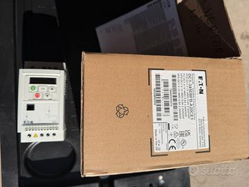 Vendo azionamento a frequenza variabile (VFD) professionale Eaton serie DC1, modello DC1-344D1FN-A20N, ideale per il controllo di precisione di motori elettrici trifase (pompe, ventilatori, nastri, macchine utensili). L'unità è in ottime condizioni estetiche e funzionali, con tastiera di comando e display perfettamente integri. I morsetti di potenza (U, V, W) e di segnale sono puliti e pronti all'installazione. Caratteristiche tecniche principali: Potenza: 1,5 kW (2,0 HP) Alimentazione: Trifase 380-480V (50/60Hz) Corrente nominale in uscita: 4,1 Ampere Filtro EMC (F): Integrato di serie per la soppressione dei disturbi elettromagnetici. Comunicazione: Porta RJ45 integrata (Modbus RTU / CANopen). Facilità d'uso: Configurazione rapida con soli 14 parametri di base. Grado di protezione: IP20 (montaggio a quadro o su guida DIN). Incluso nella vendita: Manuale d'uso cartaceo originale (visibile in foto). Morsettiera di controllo numerata per un cablaggio semplificato. Condizioni di vendita: Prezzo: € 250,00 Stato: Usato in ottime condizioni, testato. Spedizione: Disponibile spedizione tracciata in tutta Italia o ritiro a mano in zona.