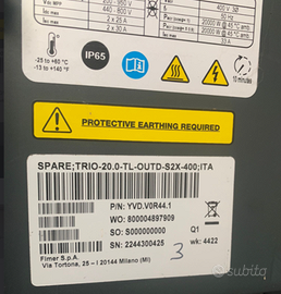 TRE INVERTER ABB POWER ONE TRIO -20.0-TL-OUTD-S2X-400;ITA DATA PRODUZIONE 45/23 + 44/22 + 45/23 Smontati a Gennaio 2025, per procedere con revamping e aumento di potenza