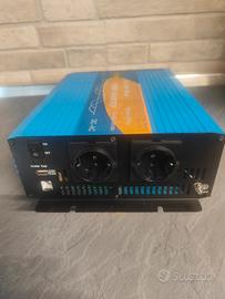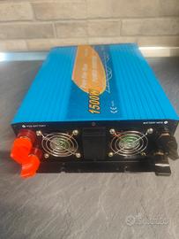 Power inverter sinusoidale onda pura da 1500w a 3000 w di picco da 12V DC a 230V AC completo di pannello remoto per monitorare stato della batteria.