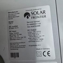 Marca / modello: Solar Frontier (prodotti da Steca Elektronik GmbH, Germania), modello “Turbo” 4.200 W AC