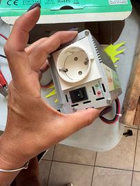 Trasforma la corrente continua 12V (batteria auto, camper, barca) in corrente alternata 220V per alimentare vari dispositivi.