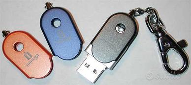 La penna usb usciva con 3 gusci colorati intercambiabili (griglio, blu e arancione) ed un laccetto in metallo con moschettone.