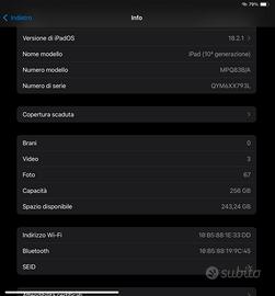 Vendo iPad 10 generazione Wi-fi con 256gb in colorazione silver Condizioni pari al nuovo.