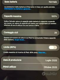 Vendo ipad 16A apple 128gb wifi per inutilizzo . 100% di capacità della batteria, ancora in garanzia