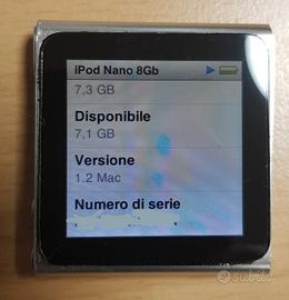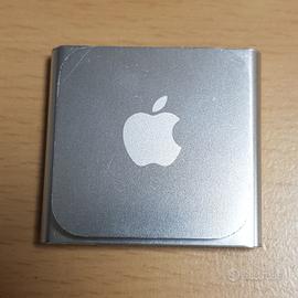 1. iPod Nano 6a generazione (A1366), silver, 8gb di memoria interna, batteria sostituita 2mesi fa, 100% funzionante (sia i tasti che lo schermo a cui ho applicato una pellicola di protezione), resettato alle impostazioni di fabbrica, non ha mai dato difetti funzionali, ha solo qualche segno di usura dovuto all'utilizzo. Comodo per fare sport data la robusta clip che lo aggancia agli indumenti.