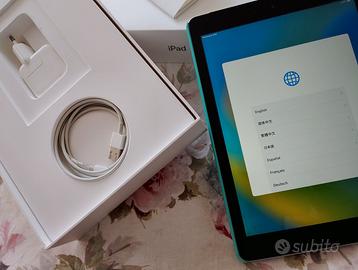 IPAD 9,7 QUINTA GENERAZIONE. TENUTO MOLTO BENE, COMPLETO DI ACCESSORI (SCATOLA ORIGINALE, ALIMENTATORE COMPLETO e CLIP PER SIM) INOLTRE COVER RIGIDO POSTERIORE VERDE. RESETTATO E PRONTO ALL'USO. Possibile consegna a mano anche fuori regione.