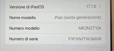 Apple IPad in condizioni estetiche Ottime modello A1893 - Batteria Originale Apple - Display Originale Apple perfetto 9,7 pollici (anno 2018) - supporta Apple Pencil - fotocamera e tasto home perfettamente funzionanti - Dispositivo testato e funzionante - Spedizione in 24/48H - inizializzato e quindi Pronto all'uso - provvisto di vetro temperato già applicato Disponibile a spedire con TuttoSubito e ritiro sul posto, lo mostro volentieri senza impegno