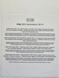 iPad 8 in condizioni eccellenti, quasi mai stato usato. Nessun graffio su schermo o retro, monta anche pellicola protettiva sul display. Colore grigio siderale e 32 GB di spazio. Batteria al 93% di salute, quasi come se fosse nuova. Cover compresa.