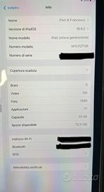 Vendo iPad 8ª generazione in condizioni perfette, pari al nuovo. Il dispositivo è stato sempre tenuto con cura, senza graffi né segni di usura, perfettamente funzionante in ogni sua parte. Memoria da 32 GB, ideale per studio, lavoro o intrattenimento. Completo di scatola originale. ✔️ Schermo impeccabile ✔️ Batteria in ottimo stato ✔️ Nessun difetto ✔️ Pronto all’uso Disponibile per prova e consegna a mano. Per qualsiasi informazione non esitare a contattare