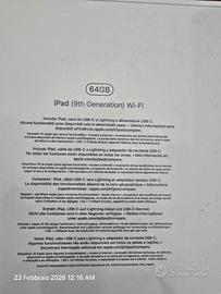 vendo ipad 9 generazione 64 gb wi-fi ancora incartato mai usato, per inutilizzo