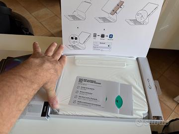 La confezione include sia cover di protezione in silicone bianca che la tastiera con protezione aggiuntiva per non perdere la penna