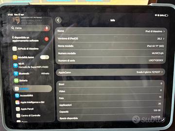 Ipad Air 11" (M2) 128GB + Apple Pencil + Tastiera Ipad Immacolato, vendita per inutilizzo Tastiera Logitech Combo Touch Stato batteria 98% Apple Pencil perfetta Primo utilizzo Agosto 2025 Scambio a mano a Palermo