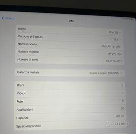 PREZZO TRATTABILE. Vendo IPad Air 2024 13’’ M2 128 gb con garanzia ancora attiva in quanto acquistato da poco (stato batteria 100%) Utilizzato pochissime volte. Insieme a quest’ultimo vendo Apple Pencil nuovissima e mai utilizzata nonchè Magic Keyboard (anch’essa praticamente nuova ma presenta una piccola macchia sull’esterno). Vi è anche il filo per caricare l’IPad. Purtroppo non posseggo le scatole originali relative ai prodotti ma, come si può notare da una delle foto, sono presenti numero di serie e modello IPad. Tuttavia sono a disposizione per eventuali informazoni in merito all’originalità.