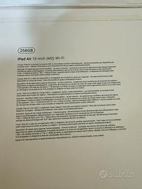 Vendo per inutilizzo iPad Air 13 M2 da 256GB Wi-Fi colore grigio siderale, praticamente mai utilizzato pari al nuovo. Acquistato il 23/11/2024 e ancora in piena garanzia. Ipad completo di scatola, scontrino e custodia della Tucano. Regalo anche l'adattatore per collegare il dispositivo ad internet attraverso cavo Ethernet. Disponibile per qualsiasi prova e consegna su Roma. L'eventuale spedizione avverrà tramite corriere espresso ed a carico dell'acquirente.