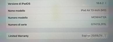 Vendo iPad air 13” M3 grigio siderale per inutilizzo, di fatto mai usato quindi nuovo e perfetto; vendo con pellicola e cover con tastiera (non apple). In garanzia 128gb.