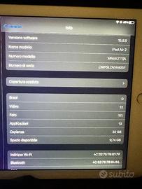 Vendo iPad Air2 32 Gb solo Wi-Fi perfettamente funzionante causa inutilizzo, vendo così come in foto. Aggiornato ad iPadOS 15.8