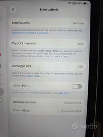 Vendo iPad Air con processore M2, acquistato a Novembre 2024. Il dispositivo è in condizioni estetiche e funzionali impeccabili, pari al nuovo. Stato della Batteria: Capacità massima: 96% Cicli di ricarica: Solo 209 Stato: Normale (prestazioni ottimali) Caricatore originale e cavo USB-C, regalo la cover protettiva Prezzo: 400€, perfetto per lavoro, studio o gaming, acquistato a novembre 2024 Consegna a mano a Cologno Monzese Non esitare a contattarmi per ulteriori foto o informazioni!