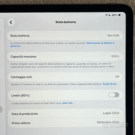 Come nuovo usato SOLO UN ANNO per prendere appunti all'università, la batteria riflette l'uso: come da foto la capacità massima è al 100% e il numero dei cicli è solo a 94. Attivato a fine 2024. Nessun difetto di funzionalità Vendo per passaggio a 11" piu comodo per le mie esigenze (non ho piu bisogno di prendere appunti e lo schermo grande faceva comodo). Tutti i pezzi sono originali non è mai stato in assistenza o riparazione, mai aperto e mai cambiato componenti. Unico difetto puramente estetico lievemente visibile è un graffietto come da foto nella parte retro superiore destra ma molto difficile da notare ad occhio nudo, per questo ho fatto la foto in controluce per farlo vedere ma se non si vede bene lo stesso sono disponibile a darvi un ingrandimento in chat privata. Sul retro della scocca c'è qualche graffietto ma sono tutti troppo piccoli e troppo poco profondi per venire in foto e veramente difficilissimi da vedere ad occhio nudo, per questo esteticamente è praticamente perfetto. Vendo con scatola originale