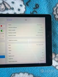 iPad Air 2 da 64GB A1597 nella colorazione Space Gray, con connettività Wi-Fi e Cellular, in ottime condizioni estetiche e funzionali Display 9,7” iOs 15.8.7 Con scatola originale No caricatore No cavo ricarica