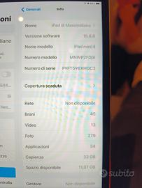 vendo iPad min wifi +cellulare come nuovo. Batteria originale e come nuova, utilizzato pochissimo, qualsiasi prova. con 10 euro in più di custodia originale Apple smart folio dia posteriore che anteriore. altrimenti cedo con custodia trasparente afmarcket. Ultimo aggiornamento Apple gennaio 2026.