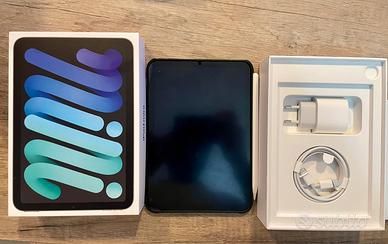 Vendo fantastico iPad mini di sesta generazione (il più recente). È stato usato pochissimo (praticamente come nuovo) e tenuto maniacalmente, sempre con cover e pellicola protettiva. Lo vendo per passaggio ad altro ipad. Vendo con apple pencil 2, cover e pellicola effetto carta gia applicata. Presente scatola originale con accessori (alimentatore e cavo) ancora imballati.