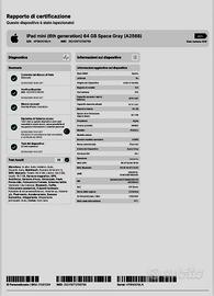 Apple iPad mini 6 Generazione WiFi + Cellulare 5G 64 Gb space grey modello A2568, usato veramente poco! Il dispositivo è in ottime condizioni, i sensori e le componenti sono state tutte testate e sono completamente funzionanti, verificato in centro specializzato, visibile nell’ultima foto il “Rapporto di Certificazione ”, così da essere tranquillo io e chi aquista, naturalmente il certificato verrà dato all’acquisto. Lo stato della batteria è ottimo al 90% Ipad 6 mini WiFi+Cellular 64Gb acquistato in Apple Store nel 2022 a Euro 859 Apple Pencil 2 Generazione acquistato nel 2022 a Euro 149 HOU Case e Tastiera per iPad mini 6 Euro 79 Apple iPad mini 6 Wi-Fi+Cellular 5G 64GB, Grigio Siderale. Il chip montato su iPad mini di sesta generazione è il chip A15 Bionic, lo stesso montato su iPhone 13 Pro e iPhone 14. Parliamo di una CPU fino al 40% più veloce rispetto al modello precedente e un livello di machine learning fino a due volte più rapido. La grafica migliora dell’80% rispetto alla precedente generazione per la massima esperienza in termini di editing, gioco e AR. Grazie allo standard USB-C è possibile sfruttare una vasta gamma di accessori, dalle unità di archiviazione esterne ai prodotti per fare musica, passando per gli HUB USB-C, i monitor esterni e via discorrendo. Il display di iPad mini è da 8,3″, di tipologia IPS, ed è a laminazione completa per la massima qualità di visione HOU Keyboard Case per iPad mini 6 Tastiera Bluetooth integrata nella cover Design ultra sottile + pieghevole Tastiera staccabile/magnetica e retroilluminata Apple Pencil (seconda generazione) È precisa all’ultimo pixel e ha una delle latenze più basse del settore: la nuova Apple Pencil è perfetta per disegnare, colorare, prendere appunti, annotare email e tanto altro.