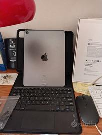 L'Ipad è dotato di Custodia con Tastiera wireless ricaricabile, mouse wireless ricaricabile e vetro temprato protettivo già applicato. Vendo anche con il cavo di collegamento USB C-USB Femmina per collegare memorie esterne (pennette usb e hard disk esterni) e altri accessori per estendere la memoria esterna. questa funzione è possibile dalla versione Pro 2018 in poi.