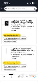 Vendo iPad Pro 11 pollici con chip M4, 256GB Wi-Fi, acquistato ad agosto 2025.