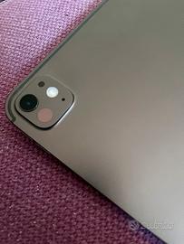 La scocca presenta qualche segno (visibile in foto) correlato ai punti di ancoraggio magnetici dell’Apple Pencil e un paio di righe sulla parte dx dello schermo, visibile in realta solo a schermo nero (confronta foto con sito apple aperto).
