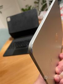 Vendo Ipad Pro 11 pollici da 128 gb usato poco e in ottime condizioni, displey nuovissimo. L’Ipad presenta una sola ammaccatura ad un angolo (vedi foto). Vendo con: Magic Keyboard funzionante e originale, è usurata solo in un punto (vedi foto); Apple Pencil nuovissima e cover aggiuntiva.