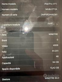 Vendo ipad Pro 11 2018 64gb wifi+cellular Perfetto in tutto, con scarola originale piu cover No spedizione No perditempo