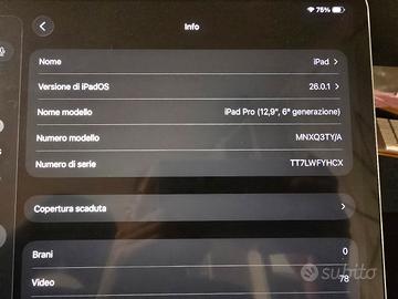 Vendo iPad Pro (12,9", 6th generazione), completo di Apple Pencil e cover originale Apple colore bianco.