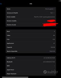 iPad Pro 12.9 pollici di quarta generazione, 128 GB, completo di Apple Pencil e Magic Keyboard originale Apple.