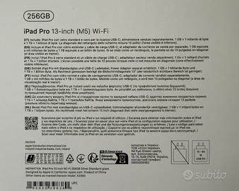 Vendo iPad Pro 13” con chip M5 (2025), acquistato il giorno dell’uscita ufficiale italiana: 22 ottobre 2025. Dispositivo in condizioni eccellenti, tenuto con cura, senza graffi o segni di usura. Non smembro la vendita. •iPad Pro 13” Wi-Fi – 256GB – Chip M5 – Colore: Argento •Display Ultra Retina XDR 13” con ProMotion 120Hz •Valore di listino: €1469 ACCESSORI INCLUSI •Magic Keyboard originale Apple per iPad Pro 13” – layout italiano •Valore di listino accessorio: €399 GARANZIA APPLE ATTIVA •AppleCare+ valido fino al 21 ottobre 2027 (~18 mesi residui) •Copertura per danni accidentali inclusa •Valore di listino: €179 Scatola originale e cavo di ricarica Usb C originale + ricevuta d'acquisto. 💰 Prezzo di listino nuovo: €2047 💰 Prezzo richiesto: €1.399 — trattativa riservata a offerte serie Acquistando questo bundle risparmi oltre €600 rispetto al nuovo, con la tranquillità di 18 mesi di AppleCare+ già attiva e inclusa. Prodotto intonso senza alcun segno di utilizzo. 📍 Consegna a mano in centro a Milano, zona Arco della Pace. Non smembro, non spedisco, no permute.