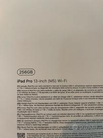 Apple iPad Pro 13'' (M5): Ultra Retina XDR, Vetro standard, 256 GB, Wi-Fi, fotocamere frontale e posteriore da 12MP, scanner LiDAR, un giorno di batteria – Nero siderale Prezzo di listino: 1.469 euro Prodotto nuovo ancora nel suo imballaggio originale, acceso solo una volta per verifica e lasciato nello stato di installazione iniziale. Vendo per non utilizzo.