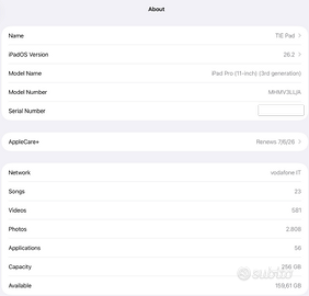 Vendo: - iPad Pro M1, WIFI + 5G, 256GB CON GARANZIA APPLE CARE + (rinnovabile x sempre) - Apple Magic Keyboard - Apple Pencil ultima generazione - Supporto metallico ergonomico RITIRO A MANO NO SCAMBI NON TRATTABILE